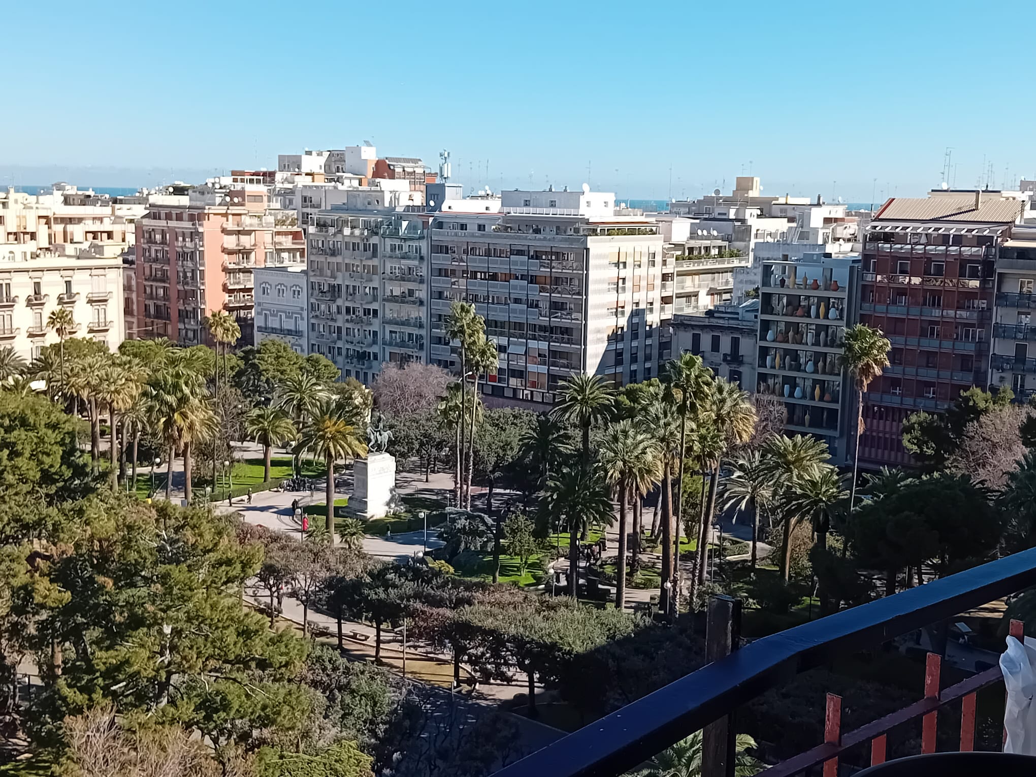 Zarówno salon, jak i obie sypialnie mają wyjście na długi balkon, który ciągnie się wzdłuż mieszkania. Balkon wychodzi na reprezentacyjny plac Piazza Umberto I i oferuje piękny widok w kierunku starego miasta oraz morza.