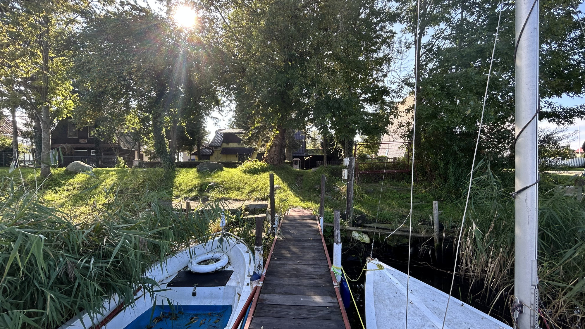Nieruchomość obejmuje dzierżawę miejsca na którym znajduje się prywatny pomost z dwoma miejscami cumowniczymi – idealnymi dla łodzi żaglowej lub motorowej do 9 metrów długości. Do pomostu został podciągnięty prąd- dodatkowe oświetlenie będzie pomocne żeglarzom się wypakować po późnym powrocie lub zapakować na wczesne wypłynięcie. Dzierżawa obowiązuje jeszcze przez 9 lat, a jej ROCZNY koszt to tele ile kosztuje podstawowy abonament Netflix!